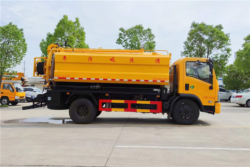 2、清洗吸污車上裝配置:罐體容積3方水罐+9方污水罐,共12方總容積,罐體采用6mm優質碳鋼板,采用德國品浮215/min22MPa高壓泵,吸污部分采用SK-12水循環泵,氣推水,10個組合噴頭,直徑19高壓管60米,吸污罐帶舉起升,后蓋液壓開啟,罐體后尾部一個100進污口球閥和一個150排污口球閥,8米吸污管一根,一套陰陽端,壓力表,視糞管,防溢閥,其他標配。