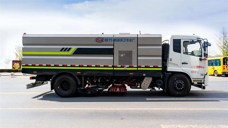 三、東風天錦單發洗掃車清水箱的容積加大(10水/7塵),綜合工作效率提高;