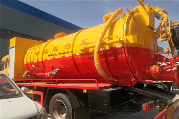 罐體采用優質武鋼鋼板制作,厚度為6mm,后封頭可整體打開,舉升排泄,帶φ600液壓排污口,三個φ100吸污口,一個φ150排污口。