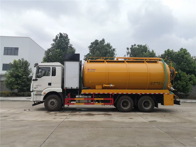 陜汽德龍新M300前四后八國六22方清洗吸污車帶副發,底盤采用濰柴300馬力發動機,陜齒大8檔變速箱,德國曼橋,帶有自動熄火功能。