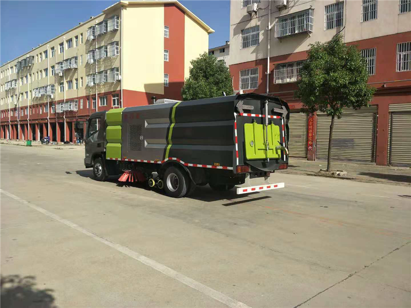 東風(fēng)多利卡洗掃車(chē)具有路面清洗、路面清掃路緣和路緣石立面洗刷、低壓沖洗、噴霧除塵等多功能。