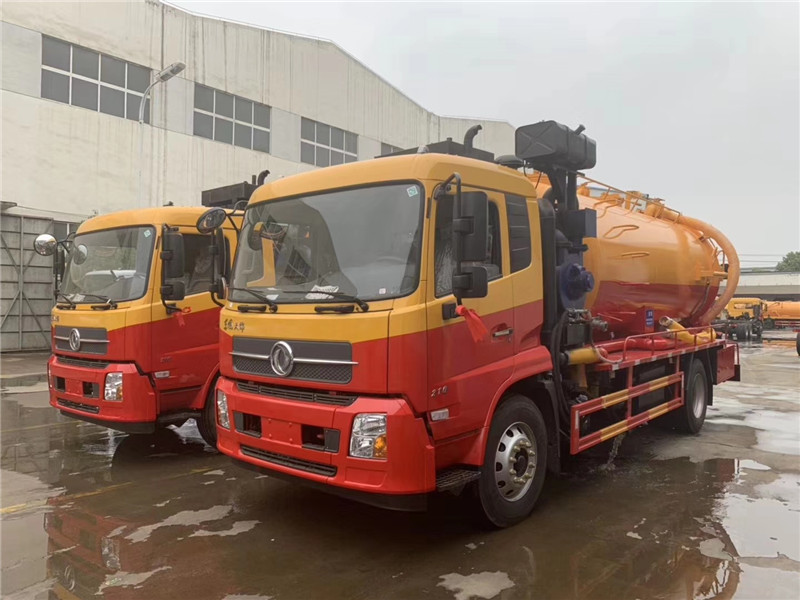 這款用東風天龍后八輪底盤,軸距(mm):4350+1350 ,270馬力東風康機五發動機,底盤型號:DFL1250A13。(2)上裝配置:罐體尺寸為(直段長×直徑)(mm):5400×2100,其中罐體前段為清水罐(直段長2000mm);后段為污水罐(直段長3400mm)。罐體用8MM厚,容積21立方,5方水16方污。后封頭左側球閥1個6寸球和4個寸的自流一個,600液壓門,右側4寸進料口。