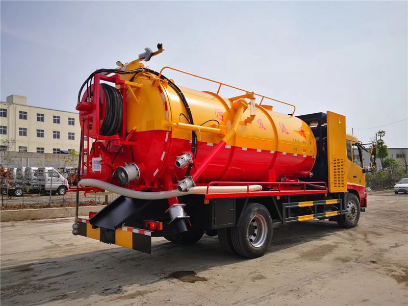 后八輪東風天龍清洗吸污車疏通堵塞的下水道和抽吸糞便,污泥漿