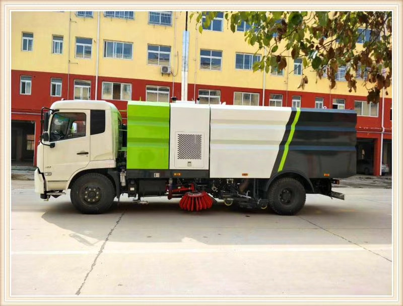 東風(fēng)天錦掃路車洗掃車底盤配置東風(fēng)經(jīng)典天錦車頭,一排半可前翻駕駛室,東風(fēng)經(jīng)典雙飛燕大徽標(biāo)LOGO,軸距4700mm,公告駕駛室標(biāo)準(zhǔn)乘坐3人,康明斯210馬力國六發(fā)動機,東風(fēng)6檔變速箱,275真空胎,4.5T噸前橋,9噸加強型后橋,雙層大梁,帶方向助力,下防護(hù),ABS,原廠空調(diào)。清掃裝置型式:中置四盤掃+后置吸嘴,掃盤可自動避障;掃盤具有3種作業(yè)模式:全掃、左前不掃、右前不掃,實現(xiàn)路面的清掃及吸塵。