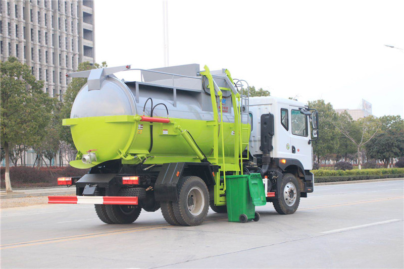 該車可選配后掛桶翻轉(zhuǎn)機構(gòu)、后擺臂翻轉(zhuǎn)機構(gòu)、垃圾斗翻轉(zhuǎn)機構(gòu)。后掛桶翻轉(zhuǎn)機構(gòu)可掛120升、240升、330升、660升垃圾桶,后擺臂翻轉(zhuǎn)機構(gòu),可翻轉(zhuǎn)2至4方垃圾斗,垃圾斗翻轉(zhuǎn)機構(gòu)主要用于垃圾收集、翻轉(zhuǎn)、密封,垃圾收集完畢以后垃圾斗起到對后尾部密封的作用,防止造成二次污染。底盤配置東風(fēng)天龍平頂排半白色駕駛室,4350+1350軸距,可裝18/20立方垃圾。國六康機290/雷諾300馬力發(fā)動機,東風(fēng)7檔/法士特9檔變速箱,5.5噸前橋。