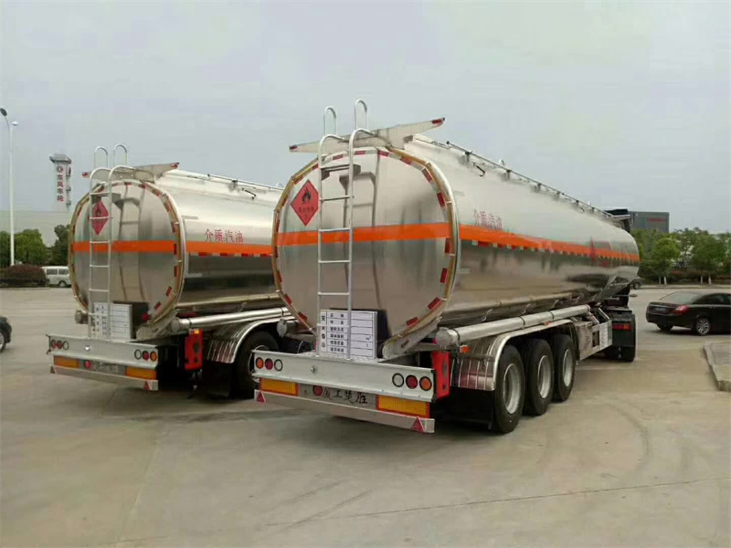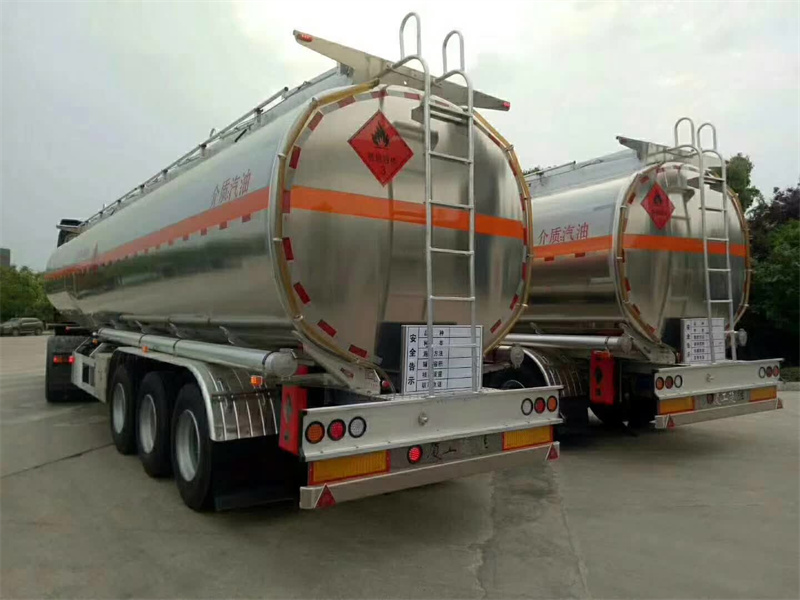 鋁合金半掛油罐六款公告標配:二軸(37.3方和44.1方),三軸(41.8方、49.5方、49方、49.2方),罐體采用鋁合金材質,帶2個歐標罐口,2個鋁合金海底閥,東風鋼圈,風神R22.5真空輪胎,富華車橋(加寬剎車片),鋼板懸掛,歐標人孔蓋,油氣回收帶下裝料,科密ABS,公告介質:汽油,柴油。