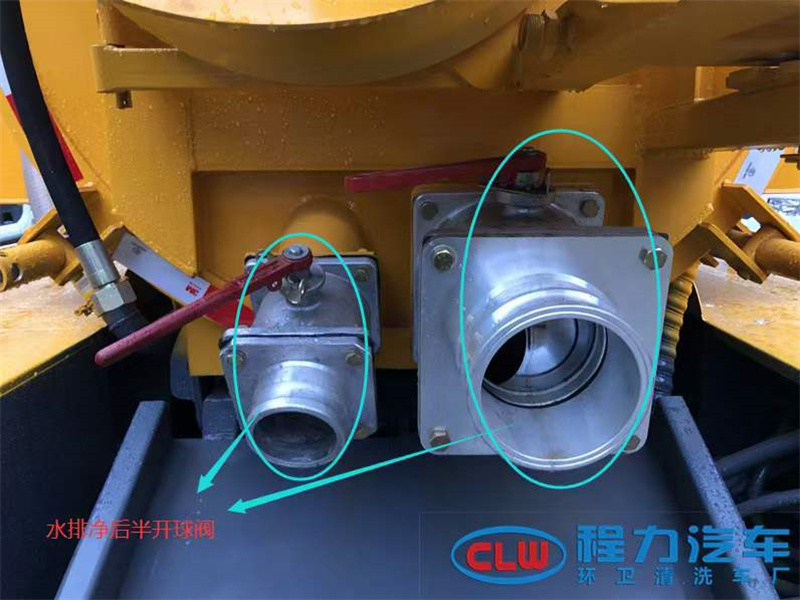 2:清洗吸污車車輛使用后,請打開整車所有的放水球閥開關,待放水完畢后,把球閥關一半保持球閥半開狀態,防止凍裂,以造成不必要的損失