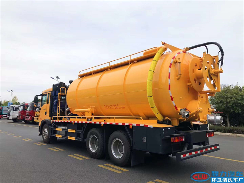 上裝配置:罐體總容積21立方米,武鋼優質鋼板制作,8個厚,污灌底部鋪不銹鋼底板,罐頂帶平臺,一個三爪罐口,帶水污互通,安裝330流量高壓泵,大過濾器,雙進水,尾部600液壓開口,大卷盤,100米25號高壓管,一個9.5公斤噴頭,大箭頭燈,安裝濰柴420馬力副發動機配258水環泵,顏色:工程黃