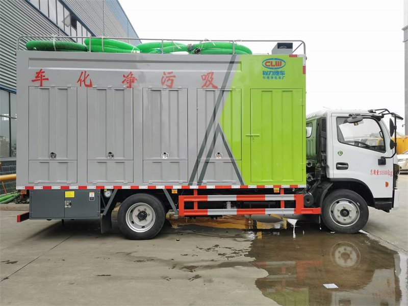 程力雙疊螺吸污凈化車一車頂五車,具有吸污,吸糞,高壓清洗,污水凈化,直抽直排五項主要功能,現場處理污水,無異味,無污染,方便快捷,省卻污物運輸與處理費用,處理后殘渣為優良有機肥料或發電站原料。