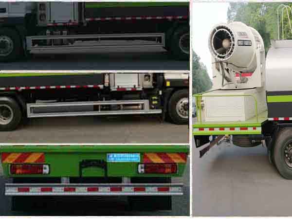 專用裝置為抑塵霧炮,用于城市抑塵.整車長/軸距對應關系為(mm):10830/5500,9830/4500,9630/5500,8630/4500.此車前伸為(mm):1200(選裝護欄清洗裝置).防護材料:Q235B碳鋼,連接方式:左右側及后防護均采用焊接連接,后部防護斷面尺寸(mm):150×50,后部防護離地高度(mm):480.ABS系統型號/生產企業對應關系:ABS-E/威伯科汽車控制系統(中國)有限公司;ABS/ASR-24V-4S/4M/東科克諾爾商用車制動系統(十堰)有限公司.當此車不選裝護欄清洗裝置時,整車長為(mm):9630,8630.