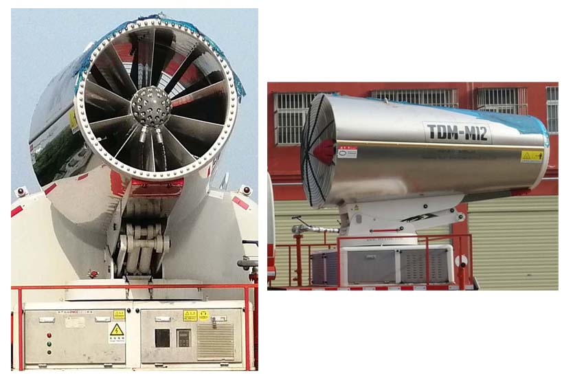專用裝置為抑塵霧炮,用于城市抑塵.整車長/軸距/后懸對應關系為(mm):8960/3950/2500;9750/4500/2740;9950/4700/2740,10250/5000/2740,10550/5300/2740,10850/5600/2740.此車后伸為(mm):1250.防護材料:Q235A碳鋼,連接方式:左右側面采用焊接連接,后下部防護采用螺栓連接,后部防護斷面尺寸(mm):150×50,后部防護離地高度(mm):450.ABS系統生產廠家,型號 :焦作博瑞克控制技術有限公司,J ABS.當軸距為(3950mm,4500mm,4700mm)時,整備質量為9980kg,當軸距為|(5000mm,5300mm,5600mm)時,整備質量為10500kg.選裝霧炮圖片.