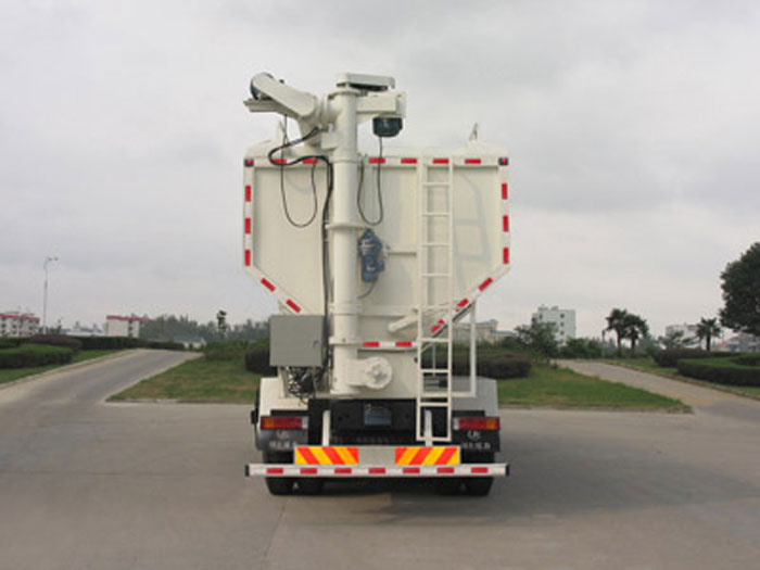 運送介質品名: 膨化及顆粒飼料、粉料;介質密度:500kg-600kg立方米,罐體有效容積:42立方米,罐體外形尺寸:9000×2495×2310(mm),飼料裝載量20-21噸,380V電動絞龍卸料,罐體內部可分4倉,裝卸不同種類飼料,垂直卸料高度8.2米,水平工作半徑7.2米。液壓絞龍式適用于無電力配置場所飼料裝卸運輸。