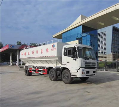 箱體采用國標鋼材制作,頂部是三個厚的防滑花紋板;飼料罐有效容積為30立方米,罐體分3個隔倉,每倉可單獨裝卸飼料,罐體長度約8.1米,輸送方式為電動(380V)絞龍卸料,整車顏色為白色,罐體采用冷扎鋼板焊接而成。可裝15-20噸,標配3倉,電動絞龍卸料,卸料管傾斜70度,垂直卸料高度8.5米,整車卸料完用時25分鐘。完全滿足養殖基地飼料塔的灌裝需要!