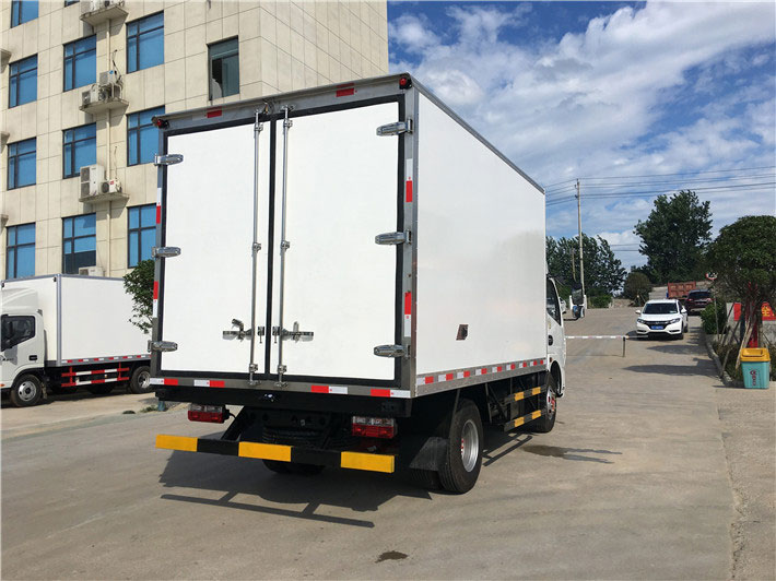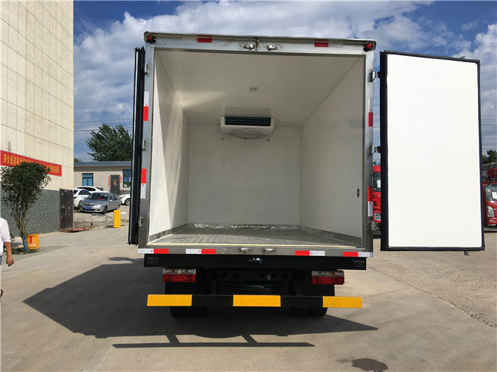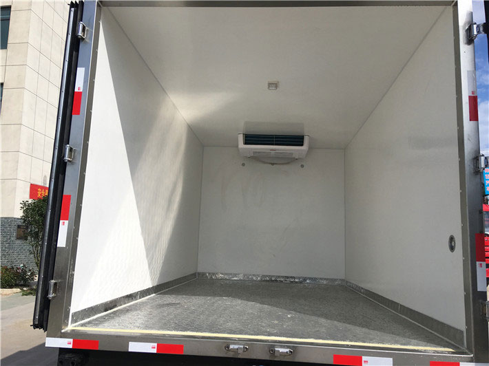 2.廂板材質:外壁板選用國內優質2.5mm玻璃鋼;中間保溫材料選用80mm保溫板,地板防滑花紋鋁板,后雙開門,門鎖件為不銹鋼,新型橡膠密封條
