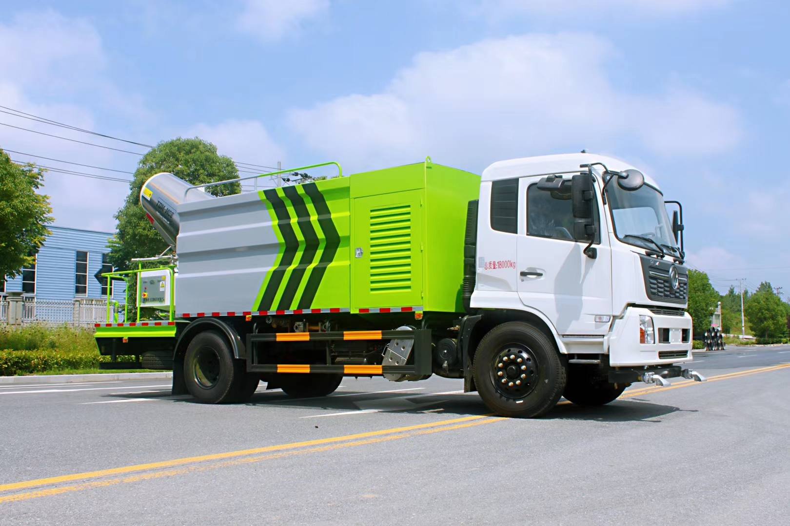 帶前部沖洗路面噴灑裝置,兩側面噴灑裝置,帶后部工作平臺、平臺上安裝綠化灑水炮(炮噴射形狀可調),可調直沖狀、大雨、中雨、毛毛雨,可連續調節,射程可達28米,垂直吸程≤7米,另加裝高效率車載式風送噴霧機,噴藥炮霧化效果好,可遠程噴霧。帶消防接口、自流閥,可自吸自排。