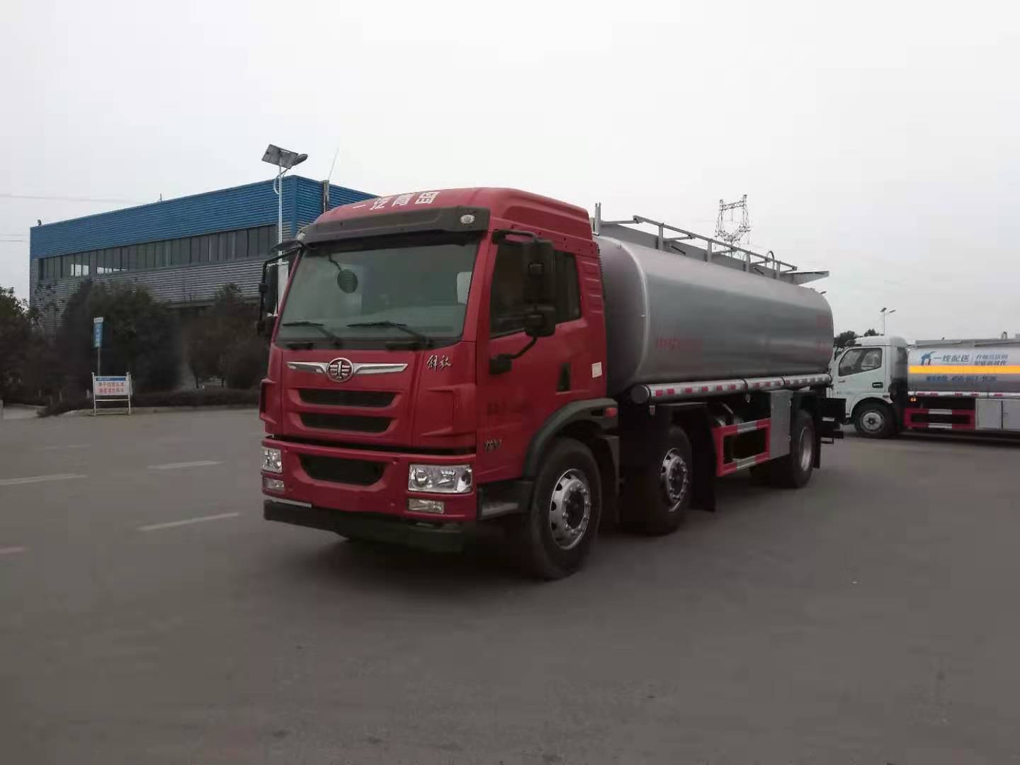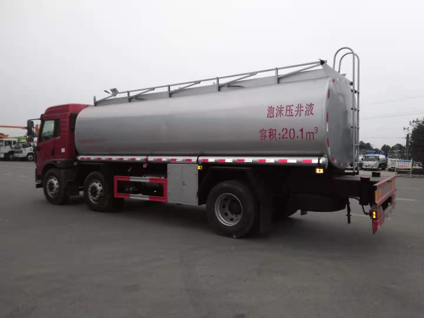 采用解放小三軸底盤,發動機一汽解放220馬力CA6DLD-22E5(國Ⅴ排放標準),陜齒小八檔變速箱,295/80R22.5 18PR真空輪胎,前后橋5噸/11噸,罐體容積≥20m3,采用優質碳鋼Q235板,罐體國標5mm厚筒體,封頭國標6mm厚制作,罐體內作環氧樹脂玻璃鱗片防腐防銹處理,分兩倉,兩倉帶球閥,帶80/60碳鋼泵,泵進泵出,兩側配泵箱,帶兩根水管,配3寸出口鋁合金球閥。詳情咨詢:18672220111