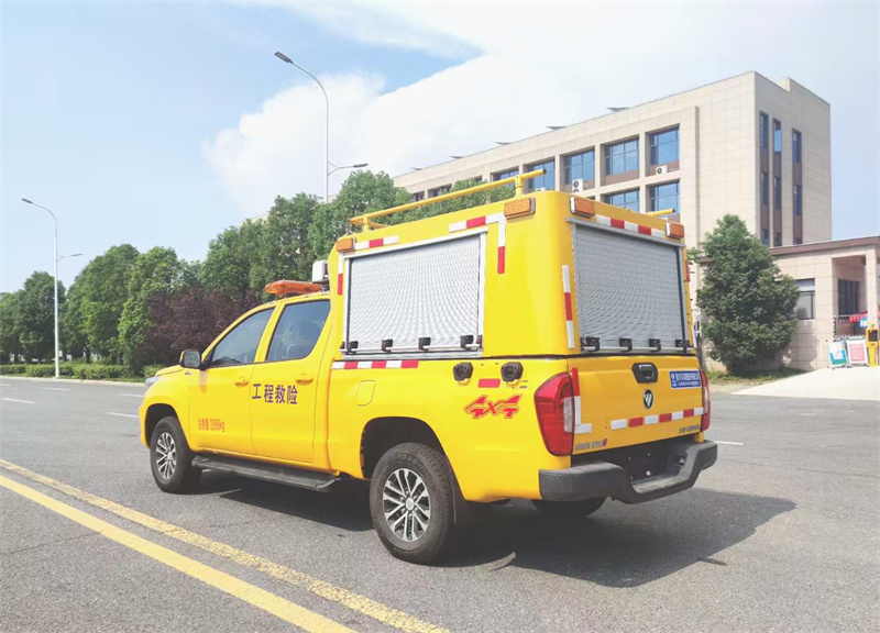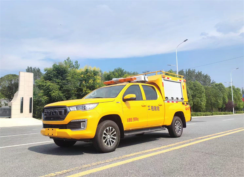 皮卡式應急搶險救援車具有高承載性,功能實用性和耐用性,具備快速的應急響應能力,該特種車是在福田雙排皮卡上進行改造,加長封閉式貨箱有利于裝載存放更多的消防工具。該車頂部安裝了工程警燈,車身采用醒目的工程黃,并貼有”工程救險車”的大字。多方位圖:底盤配置:鹵素大燈、245/70R16輪胎、鋁合金輪輞、仿皮座椅、ABS+EBD、前盤后鼓、前排普通三點式安全帶、后排中間兩點式兩邊三點式安全帶、LED日間福田四驅皮卡工程應急搶險救險車   皮卡式應急搶險救援車具有高承載性,功能實用性和耐用性,具備快速的應急響應能力,該特種車是在福田雙排皮卡上進行改造,加長封閉式貨箱有利于裝載存放更多的消防工具。該車頂部安裝了工程警燈,車身采用醒目的工程黃,并貼有”工程救險車”的大字。多方位圖:車燈、前霧燈、大燈延時關閉、側踏板、護欄、外繩鉤、貨箱寶、內后視鏡手動防眩目、A柱扶手、點陣屏儀表、仿皮多功能方向盤、主駕座椅手動6向調節、副駕座椅手動4向調節、雙氣囊、剎車輔助、倒車雷達、發動機防盜、T-BOX(2G)、定速巡航、8寸MP5、倒車影像、藍牙電話、電動空調、一鍵啟動、機艙蓋氣動撐桿、4揚聲器、后保險杠. 應急救援車參數配置表。