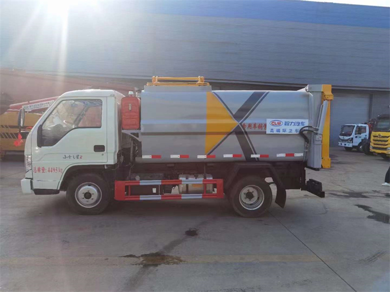容積,3方,箱體采用Q235碳鋼板焊接而成,安微?液晥?油泵,威?博森?樂?路多?閥,威森博樂油缸,箱體內部推鏟卸料,后?液門?壓開啟,拉桿式提升機,掛240L?準標?垃圾桶。