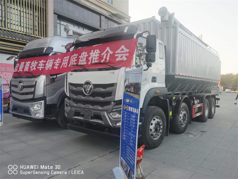 福田歐曼短軸前四后八飼料車,玉柴350馬力,法士特10檔變速箱,整車自重:12.5噸,罐體容積:40立方,液壓系統卸料,瓦楞板輕量化設計!