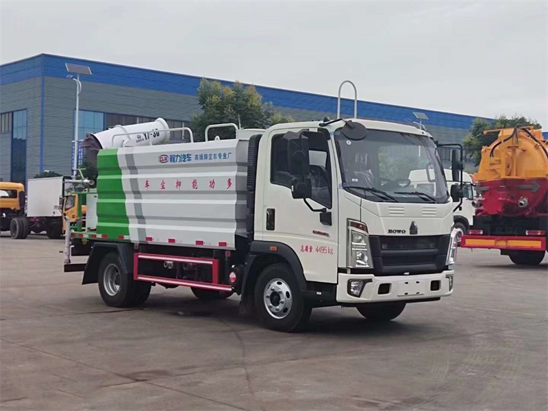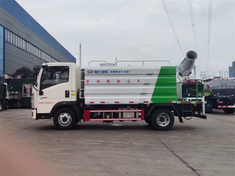 7方水車性價比推薦:重汽豪沃7方抑塵灑水車,1.9米寬單排駕駛室、6檔變速箱、5噸后橋、氣喇叭、7.00R16鋼絲胎、多功能方向盤、空調、中控門鎖、電動門窗、遙控鑰匙、120升鋁合金油箱。