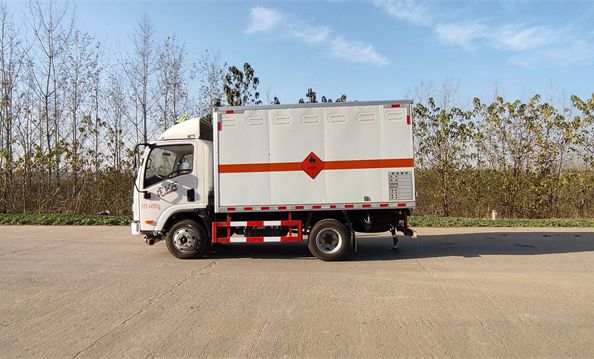 1類:爆破器材運輸車;類別項號:1.1D,1.1D,1.1B,1.1D,1.1G,1.4G,1.4G,1.1D,1.2D;該車用于運輸具有獨立容器(瓶)包裝的:黑火藥,壓縮黑火藥,電(非電)引爆雷管,專用煙火制品,無煙火藥,糊狀火藥,導爆索,點燃導火索,射彈,帶有爆炸裝藥,聚能裝藥,非電引爆雷管組件,油井用彈藥筒,固態推進劑,動力裝置用彈藥筒,商品爆炸裝藥等。