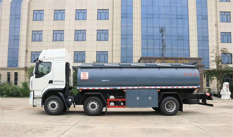 上裝配置:容積:17.6立方米,介質:清洗劑、減水劑、凈水劑、添加劑、壓裂液、水、潤滑油……罐體采用304#不銹鋼4-5mm厚制作,單倉帶60-90灑水泵,一個不銹鋼海底閥,一個罐口,兩個清洗口,兩個泵出口(一個在正常位置,一個在罐體尾部并出口向上,其余標配。