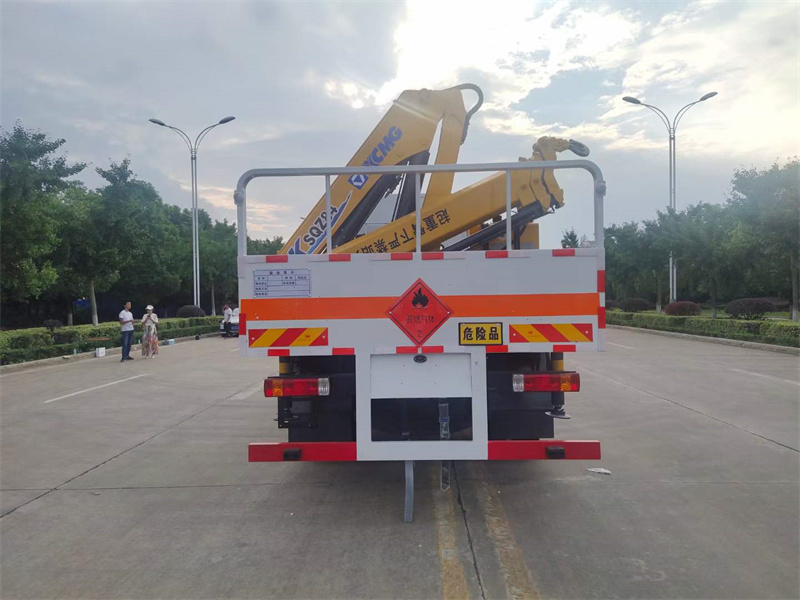 倉欄配置:嚴格按照公告尺寸制作,底板采用5MM花紋板制作,底板上鋪靜電膠皮,低欄瓦楞式,配備滅火器,三角頂燈,靜電拖帶等,嚴格按照國家危險品法規(guī)進行“易燃氣體”標識粘貼等,帶徐工吊(4噸3節(jié)折臂)。