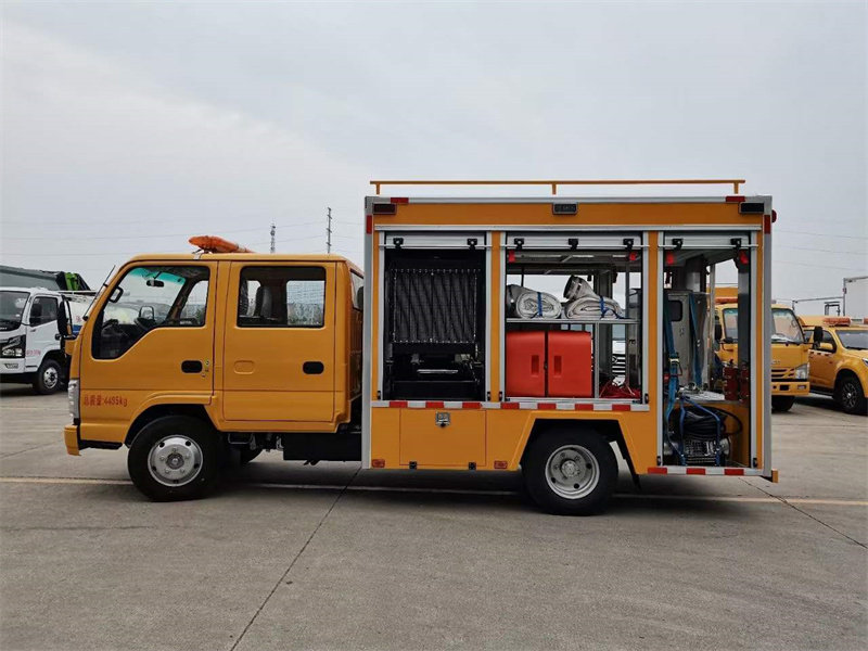 五十鈴雙排救險救援車,箱體內(nèi)置玉柴60kw發(fā)電機組,1000立方/h便攜式潛水泵,單排500立方/h,60米水帶!