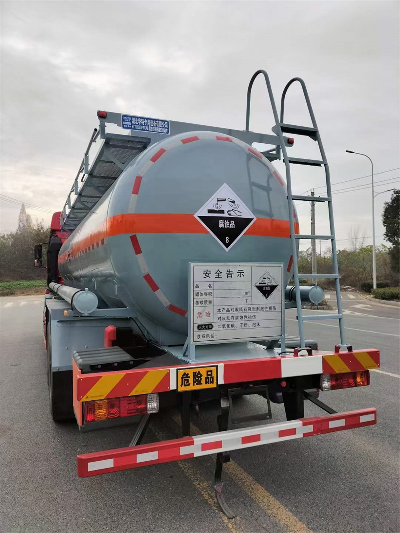 解放J6L四軸鋼襯塑罐車:可運輸鹽酸、硫酸、氫氧化鈉溶液、磷酸溶液、硝酸、乙酸溶液、次氯酸鈉等8類腐蝕品。