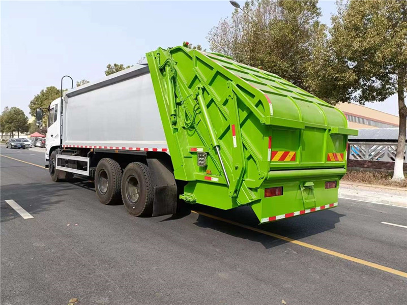 東風商用20方壓縮垃圾車由程力壓縮垃圾車生產廠家研發制造。此款壓縮垃圾車帶大落地斗,防止垃圾外泄。