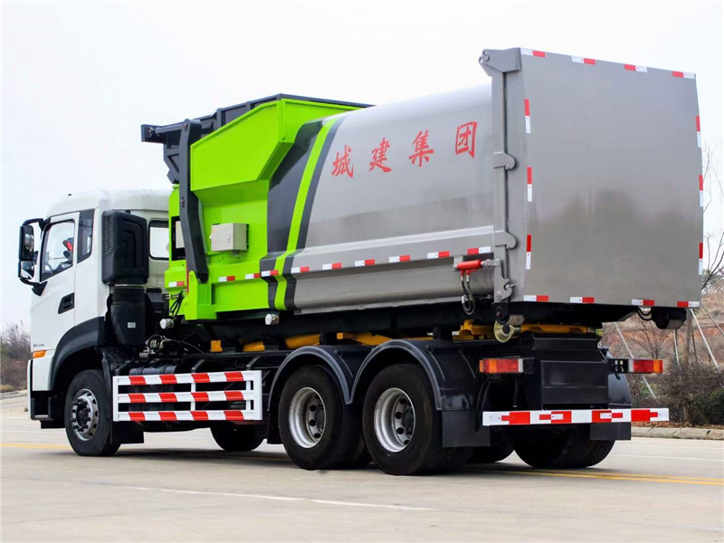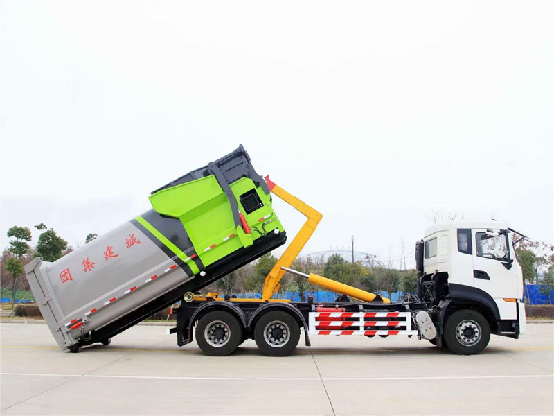 20方東風天龍后雙橋套臂垃圾車屬于鉤臂垃圾車中的一種。