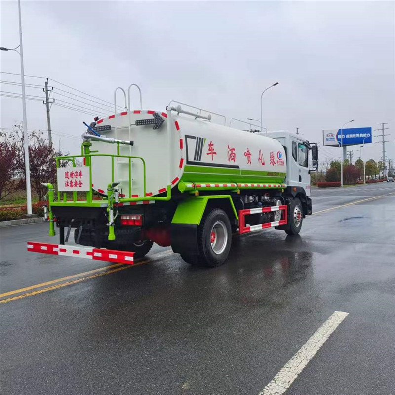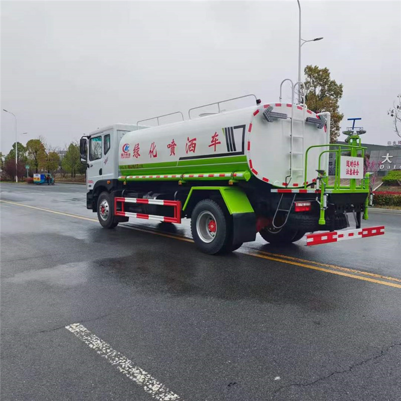 綠化噴灑車底盤配置:軸距4500,駕駛室2315/排半,發動機型號為B6.2NS6B230,230馬力,發動機功率169KW,變速箱采用法士特8JS95,輪胎規格10.00R20 18PR,前后橋4.5/10德納,250雙層車架,動轉,離合助力,電動門窗中空鎖,空調,斷氣剎,排氣制動,ABS,帶取力器
