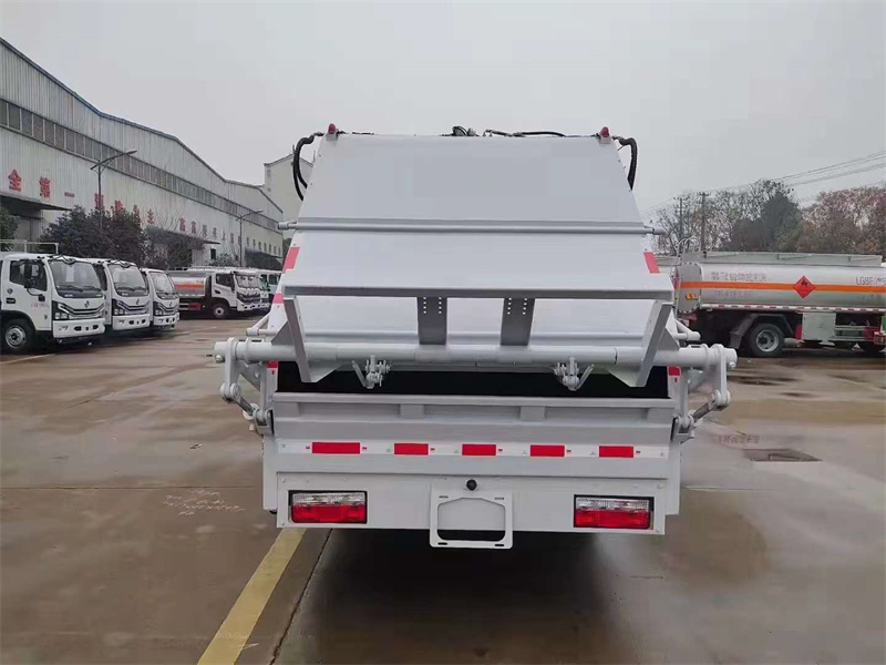 上裝配置:整車上裝采用Q345高強度錳鋼制作,容積7立方,新式可破碎刮板,中置及后置污水箱,雙向蠕動壓縮,國內知名品牌液壓系統(合肥泵,中梅閥,嘉善取力器,國產油缸),駕駛室內及車身外集中電控(PLC),尾部選裝翻轉機構,帶氣動密封蓋,帶遙控器,駕駛室內一鍵循環,司機不下車完成卸料工作。顏色:白灰。