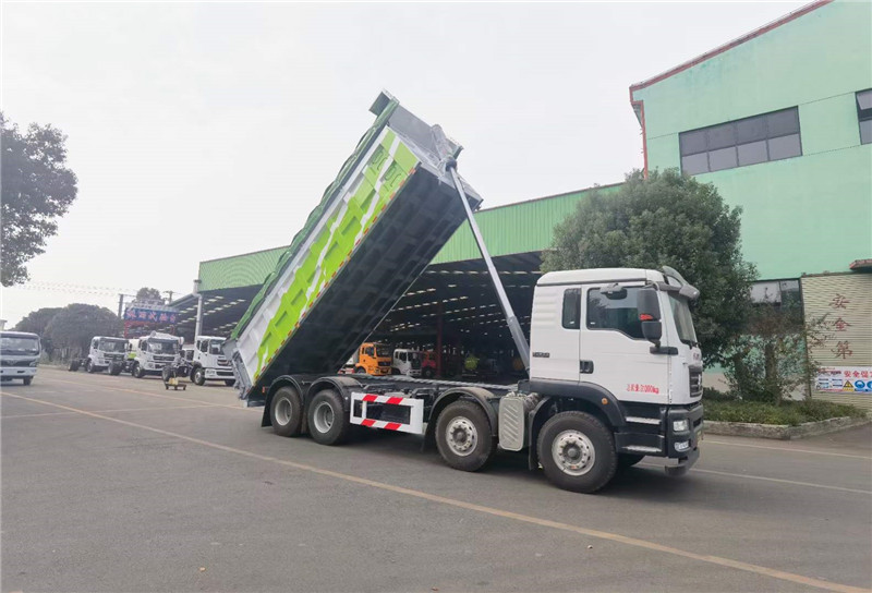 重汽汕德卡前四后八自卸式垃圾車現貨,公告、環保齊全!