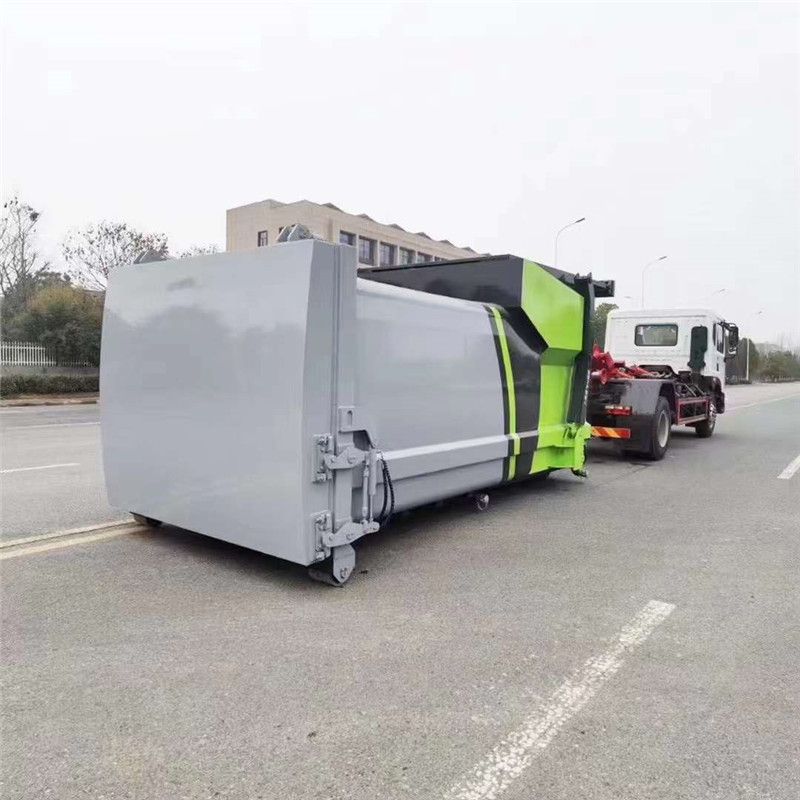 程力廠家12方移動(dòng)壓縮垃圾箱,搭配東風(fēng)4500mm軸距D9勾臂車使用,箱體采用Q345高強(qiáng)度錳鋼板焊接而成,箱體內(nèi)腔無骨架圓弧曲線設(shè)計(jì),外形美觀,科學(xué)合理,鴻輝動(dòng)力單元、液壓油缸,PLC電控系統(tǒng),電子顯示屏,可直觀顯示箱體壓滿程度及故障診斷,操作簡(jiǎn)單便捷,后門液壓鎖緊無泄漏避免垃圾二次污染。可移動(dòng)10噸垃圾箱