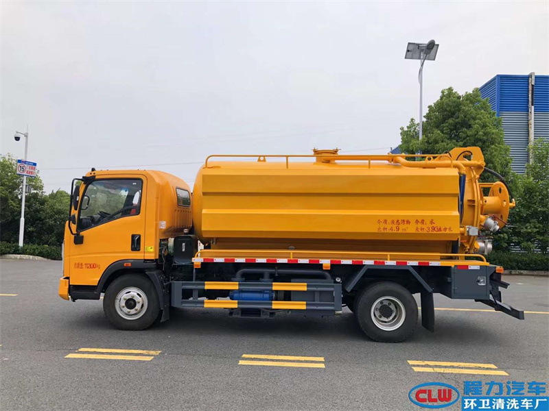 上裝配置:污灌7立方,清水3立方,帶水污互通,采用武鋼優質鋼板制作,壁厚6個厚,清水箱4個厚,安裝215流量高壓泵,帶氣吹水,山東淄博SK-12水循環真空泵,尾部一個100和150的自流口,罐體帶自卸功能,后蓋可液壓開啟,尾部4個鎖緊,罐頂和罐體兩側帶放罐平臺,其他廠家標配,免征環保齊全。