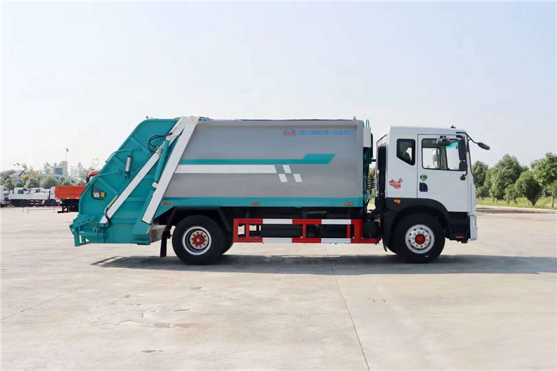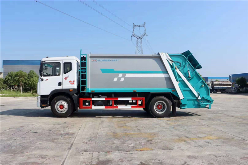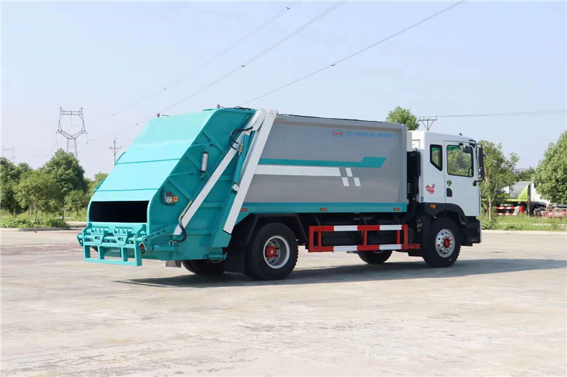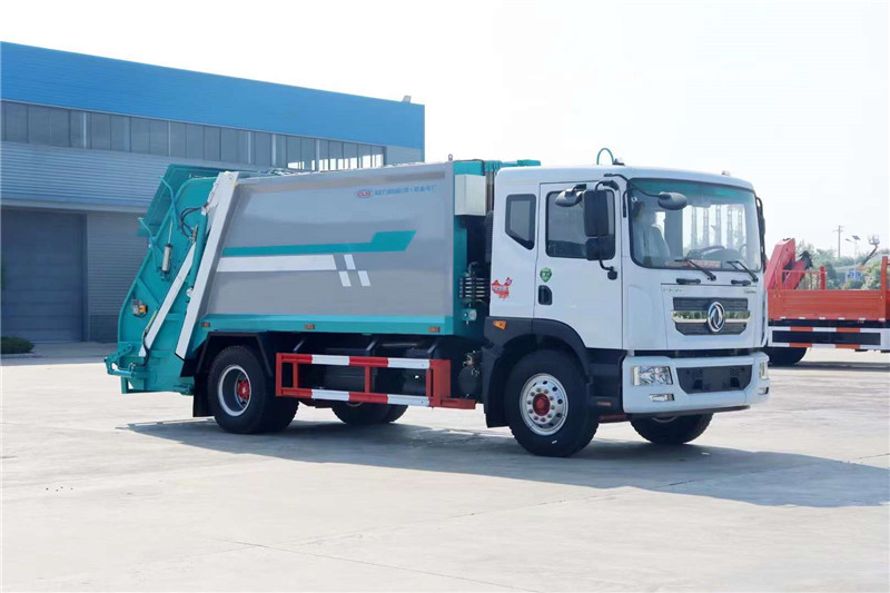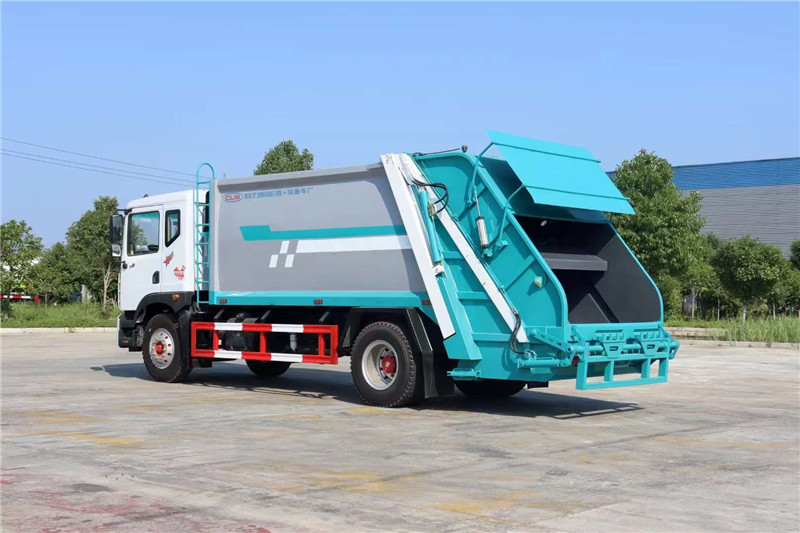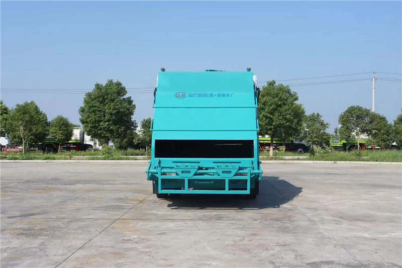 壓縮垃圾車上裝配置:廂體容積12立方,采用Q345錳鋼制作,選用揚州中梅多路閥,皖液泵,海普瑞斯油缸,填裝器舉升帶雙向液壓鎖裝置,后尾部為掛桶翻轉機構,可掛240L垃圾桶,帶無線遙控,壓實閥,駕駛室與車輛外部均帶有電控操作。