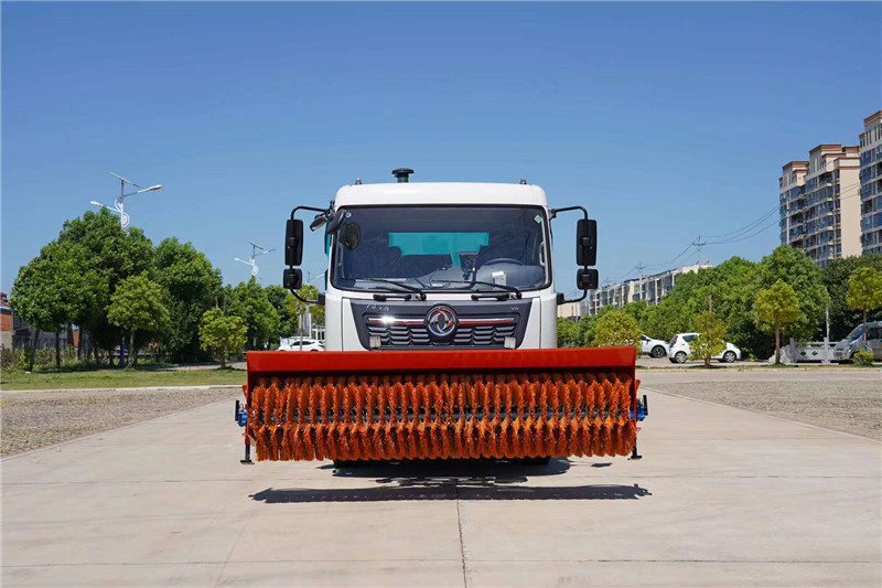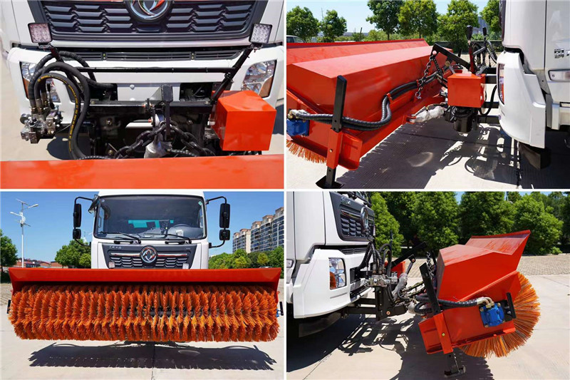 程力道路清掃車生產廠家研發的新品東風天錦后置滾掃吸塵車前端加裝3米雪滾,平時清掃路面,到了雪季除雪。一臺吸塵車也可當鏟雪車使用,節省用車成本。
