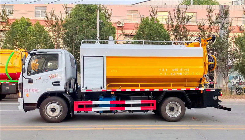 罐體容積:8+3,實車公告,戶上?無憂,底盤配置:3800軸距,玉柴165馬力國六發動機,萬里揚6GT40變速箱,245/70R19.5輪胎,2.7t/5.5t前/后橋,192雙層大梁,動轉,離合助力,排制氣?動氣斷?剎,空調窗電?中控鎖,ABS,上裝配置:體罐?采用6mm優質碳鋼板,高壓部分采雙用?耀215L /min 22MPa壓高?泵,吸污分部?采用山東SK-12水循環泵,氣吹水,10組個?合噴頭,直徑19高壓管60米,吸污罐帶舉升,后蓋液開壓?啟,罐體蓋后?尾部-個100進污口閥球?和一個150排污口球閥,8米吸污一管?根,一套陰陽端,壓力表,視糞管,溢防?閥,其他標配。