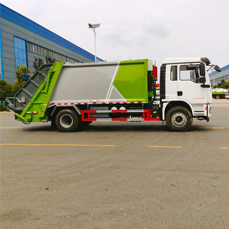 程力環衛清洗廠公告型號程力牌CL5182ZYS6HQ型壓縮垃圾車,陜汽14立方壓縮垃圾車發往廣東茂名,新款德龍L3000平地板駕駛室,氣囊座椅,電動門窗,濰柴220馬力,陜齒八檔變速箱帶,漢德10噸級后橋,1000鋼絲胎,箱體采用機器人自動化焊接工藝,江蘇飛達油缸,中梅多路閥,皖液油泵。