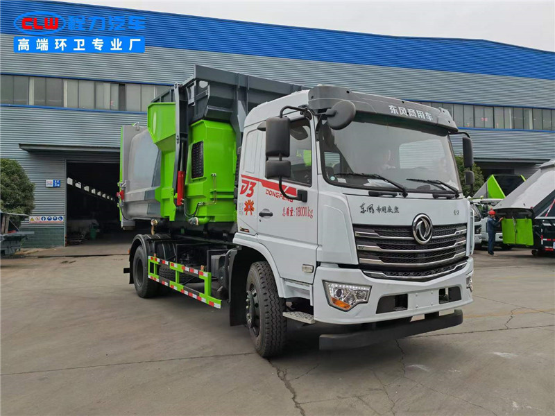程力?臂套?垃圾車廠家使用東風專底玉柴200馬力,4500軸距。?質優?錳?制鋼?作箱體,?縮伸?套臂,無?遙線?控操作,?液皖?泵,威森?樂博?油缸,液?后壓?支腿。配備10?移方?動?圾垃?站。