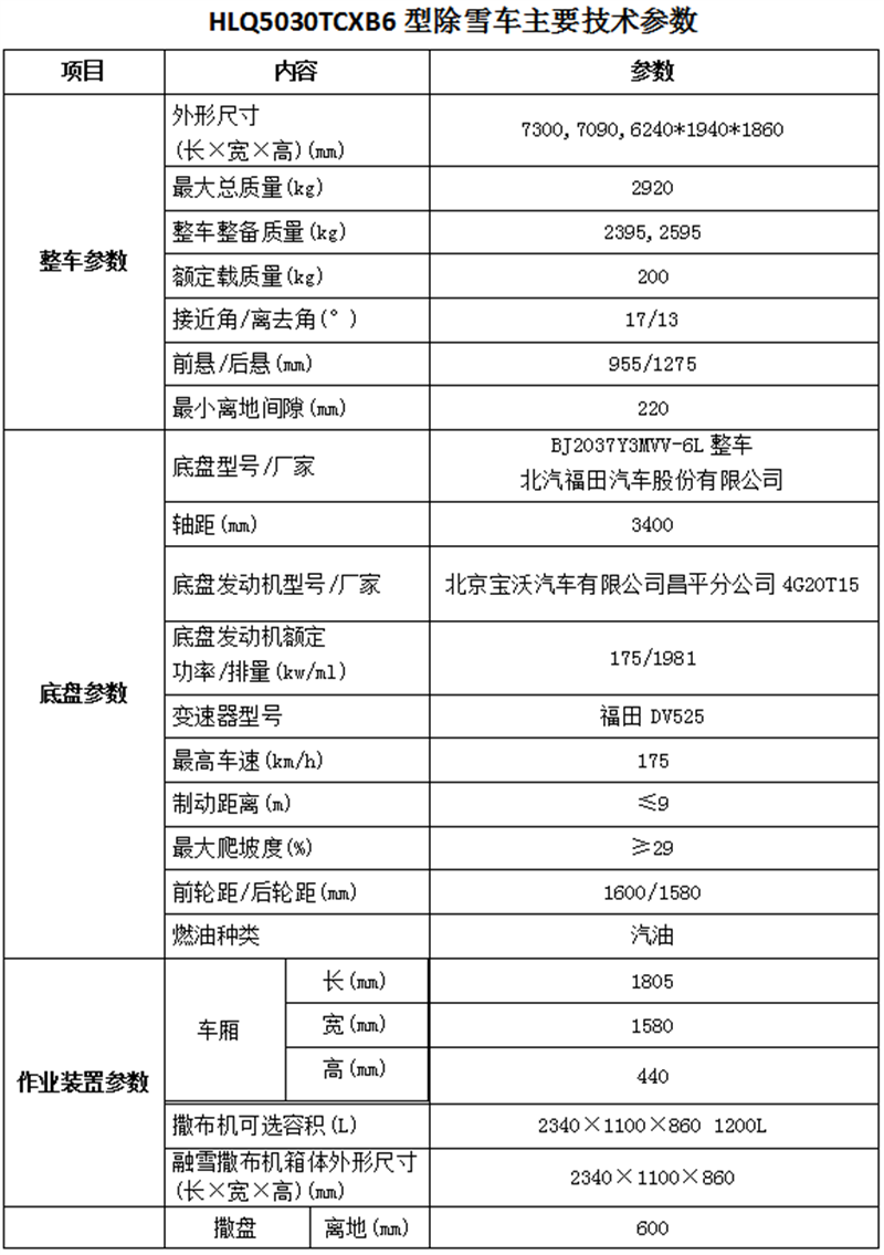 福田皮卡四驅(qū)除雪車整車型號為HLQ5030TCXB6型除雪車
