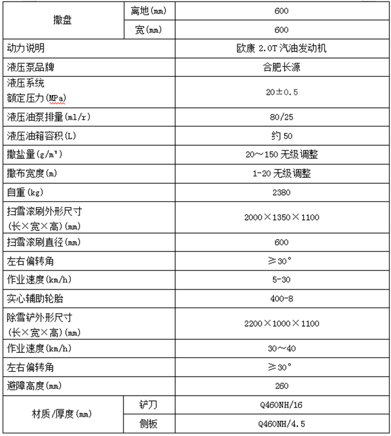 該皮卡除雪車適用于現(xiàn)代城市、高速等路段除雪、融雪、掃雪及破冰的專業(yè)化運(yùn)輸與作業(yè)車輛,該車前置除雪鏟、掃雪滾刷互換使用,積雪厚時用掃刷將其掃至馬路兩側(cè),或用推鏟把結(jié)冰的積雪推至馬路兩側(cè)。后置融雪撒布機(jī),除雪的過程中,撒布機(jī)拋灑融雪劑,防止?jié)窕穆访娼Y(jié)冰影響交通,使車輛安全通過。