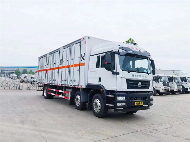 煙花爆炸運輸車9.5米重汽汕德卡爆破器材運輸車,上戶噸位10噸。需要其他1-9類危化品運輸車可聯系18672220111李經理。