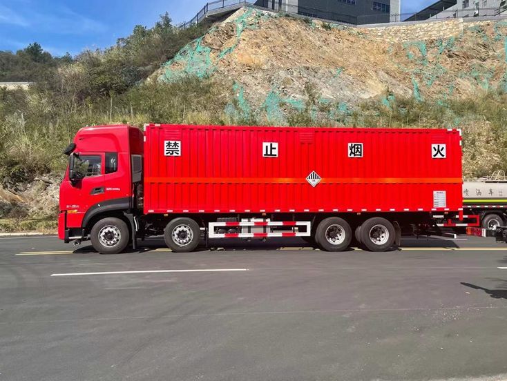 當前位置: 首頁> 爆破器材運輸車|防爆車|煙花爆竹運輸車 > 東風天龍前四后八危險品廂式運輸車